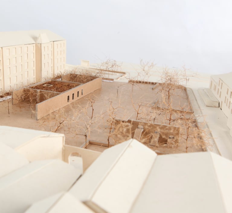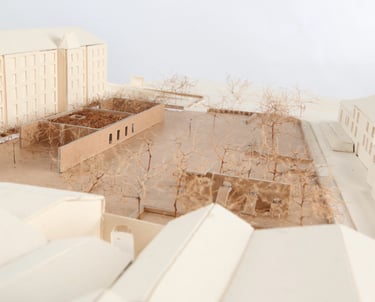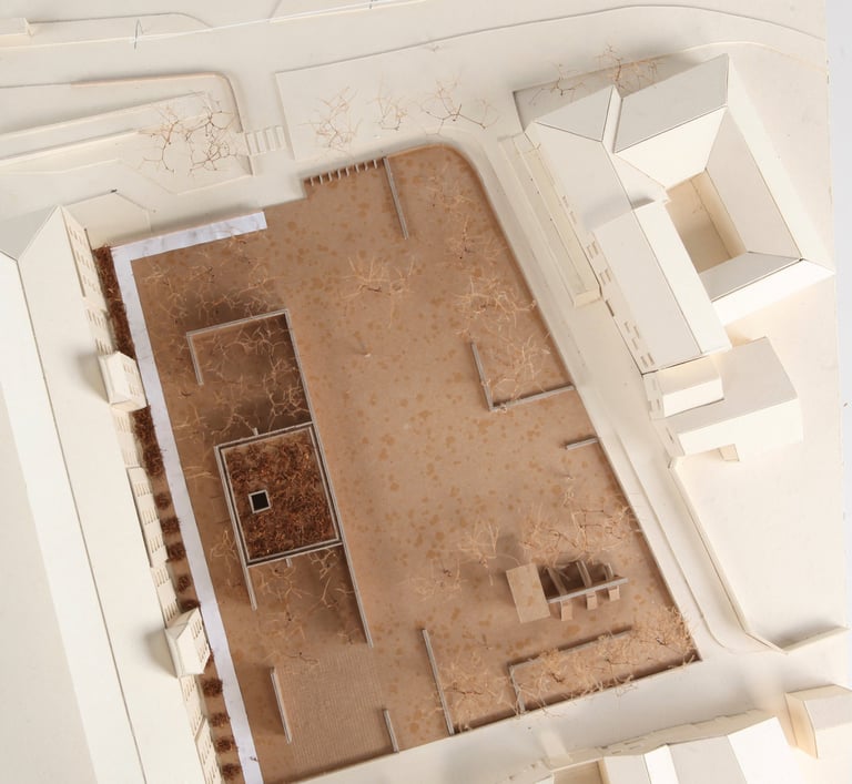 Situé sur la place Emile Zola, face au musée d'art Roger Quillot et au passage du tramway, le site présente plusieurs fonctions sous-exploitées : un parc cloisonné, une esplanade privée et deux parkings. Notre démarche vise à repousser les limites de cet espace familier, le transformant en une respiration urbaine par la désartificialisation des sols.