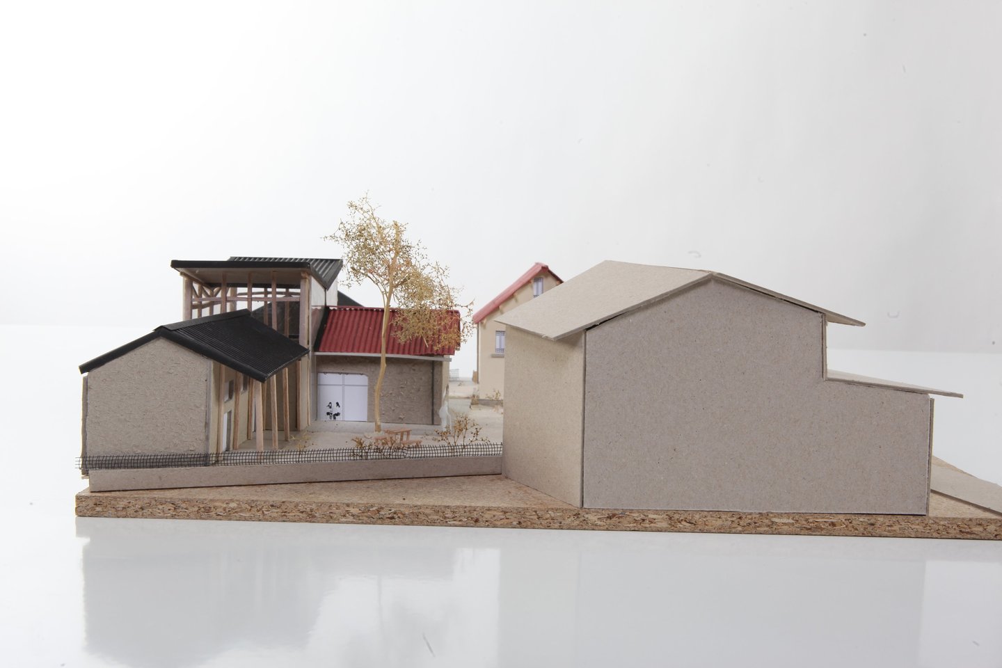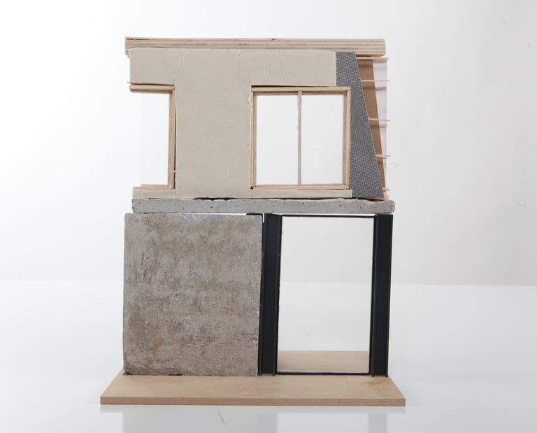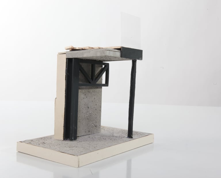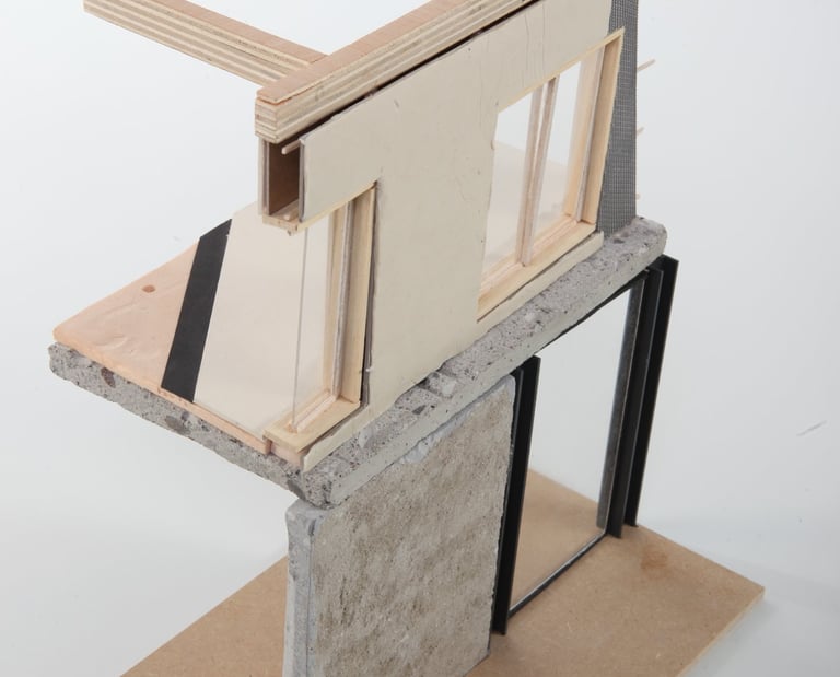 Au rez-de-chaussée, on réutilisera la structure existante en la solidifiant et en ajoutant des IPN pour plus de solidité. Les deux noyaux de circulation encadreront cet espace, qui sera ensuite entouré de murs rideaux et de grandes portes accordéon ajourées donnant accès au jardin.